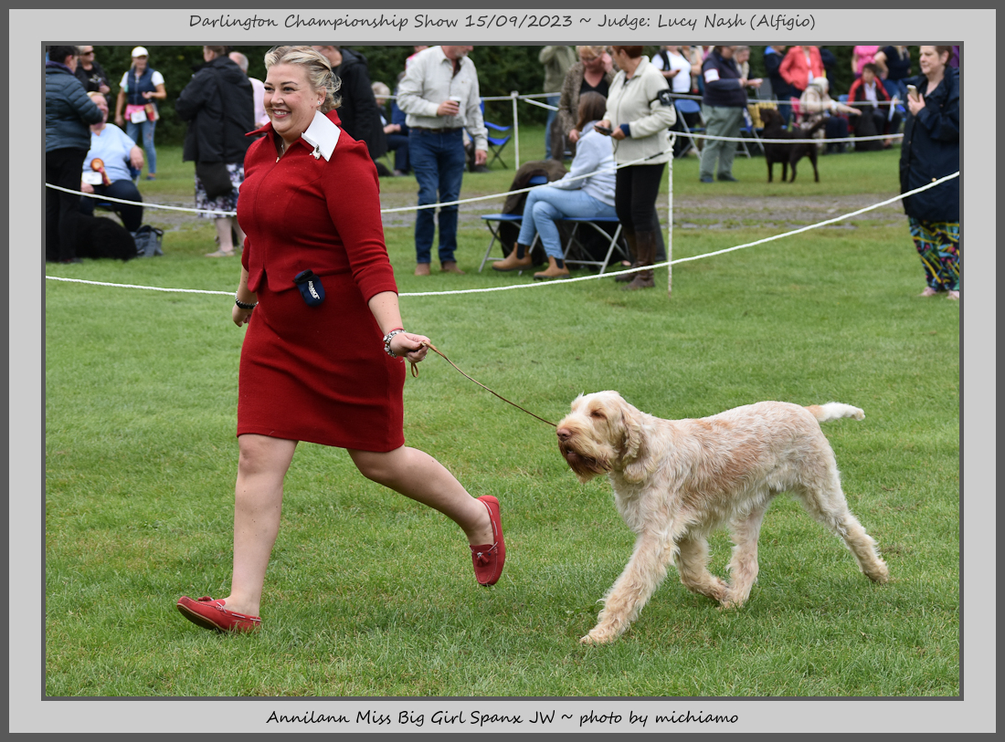 | The atmosphere was wonderful, we had lots of cheering and clapping, lots of friendly smiling faces and happy Spinoni and their people. | |||