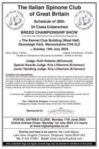Click on the relevant schedule for more information about that show. The ISCGB will be holding their Open show and a second Championship show on Saturday November 23rd 2024 at Stoneleigh Park. Details will be posted here when the schedules are available.